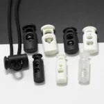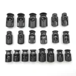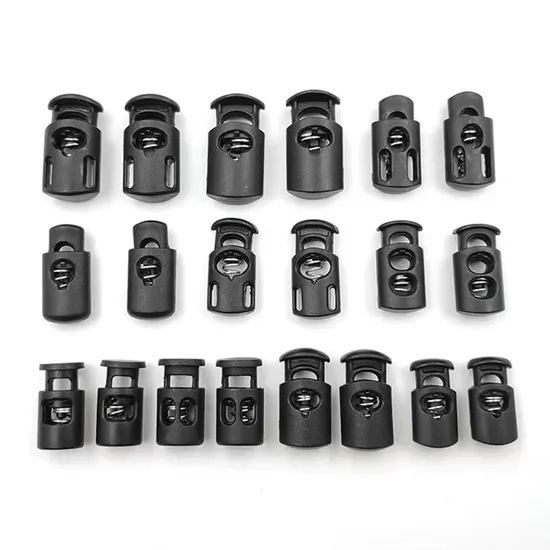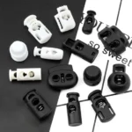Çantalar Ayakkabı ipleri Giysi Bağlama Kaydırıcılar Düğmeler Çekme ipleri Uç Düğmesi Tek Delik Yay Durdurucu Siyah Plastik Kordon Kilitleri