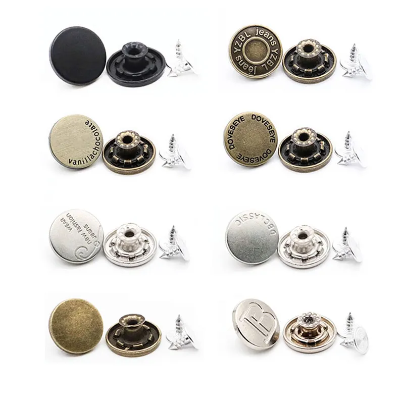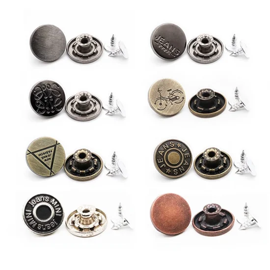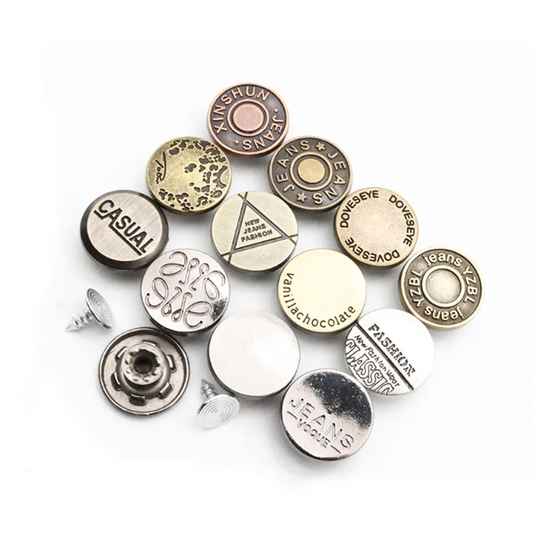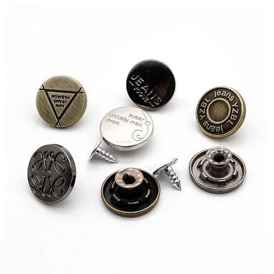 Çinko Alaşımlı Oymalı Logo Düğmesi, Logo ve Rivetli Özel Metal Kot Düğmesi, Giysi Tekstili için