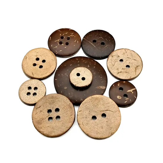 Fabrika Malzemeleri Giyim Aksesuarları Saf Doğal Hindistan Cevizi Kabuğu Düğme İki Delik Dört Delik Ahşap Hindistan Cevizi Düğmeleri