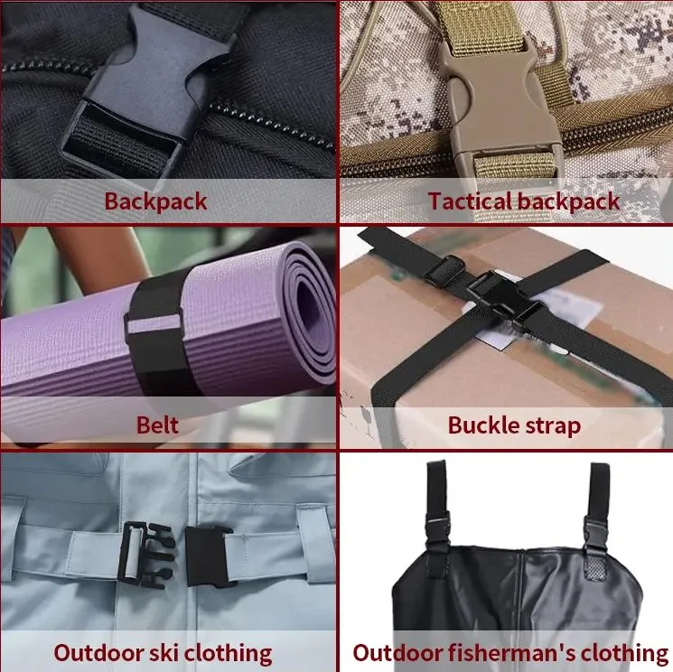 Özel Logo İkili Dış Mekan Sırt Çantası Aksesuarları Web Kemer Güvenlik Kilidi Webbing Ayarlanabilir Plastik Klips Tokası Çanta için