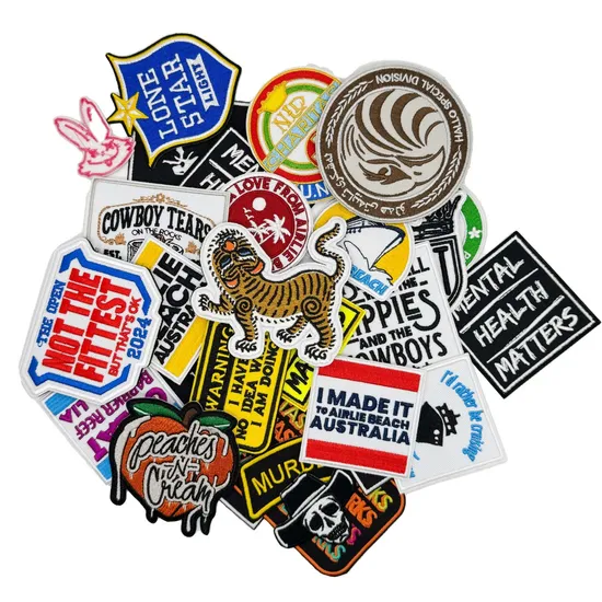 Özel Paketleme Logosu Nakışlı Dokuma Isı Transferi Demirle Yapıştırılan Nakış Rozetleri Giysiler İçin Kumaş Yaması