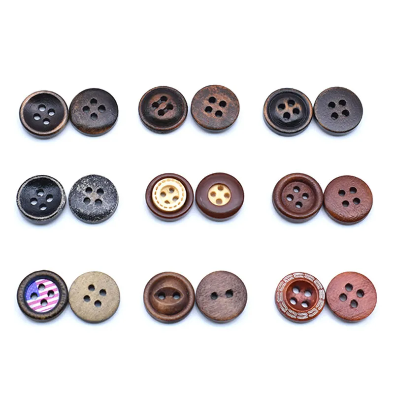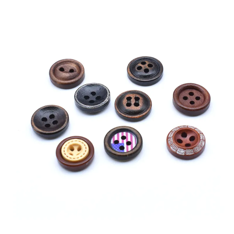 Sıcak Satış 15mm DOT Boyalı Ahşap Düğme Karışık Renk Düğmeler İki Delikli Ahşap Moda Düğmeler