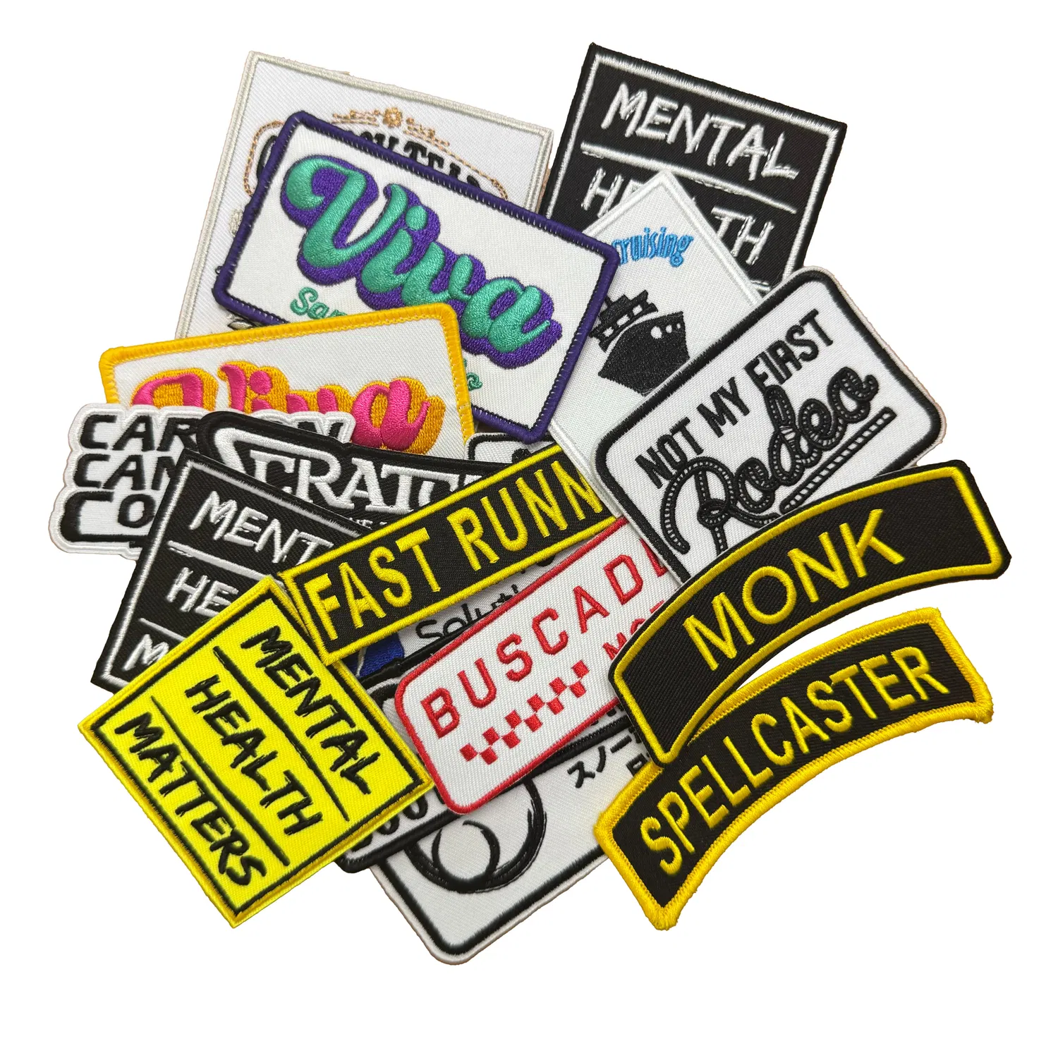Toptan Özel Kişiye Özel Nakış Yaması Marka Adı Harf Dokuma Kumaş Rozet Velcro Yaması Giysi Ayakkabı Kumaş OPP Torba Giysi Etiketleri
